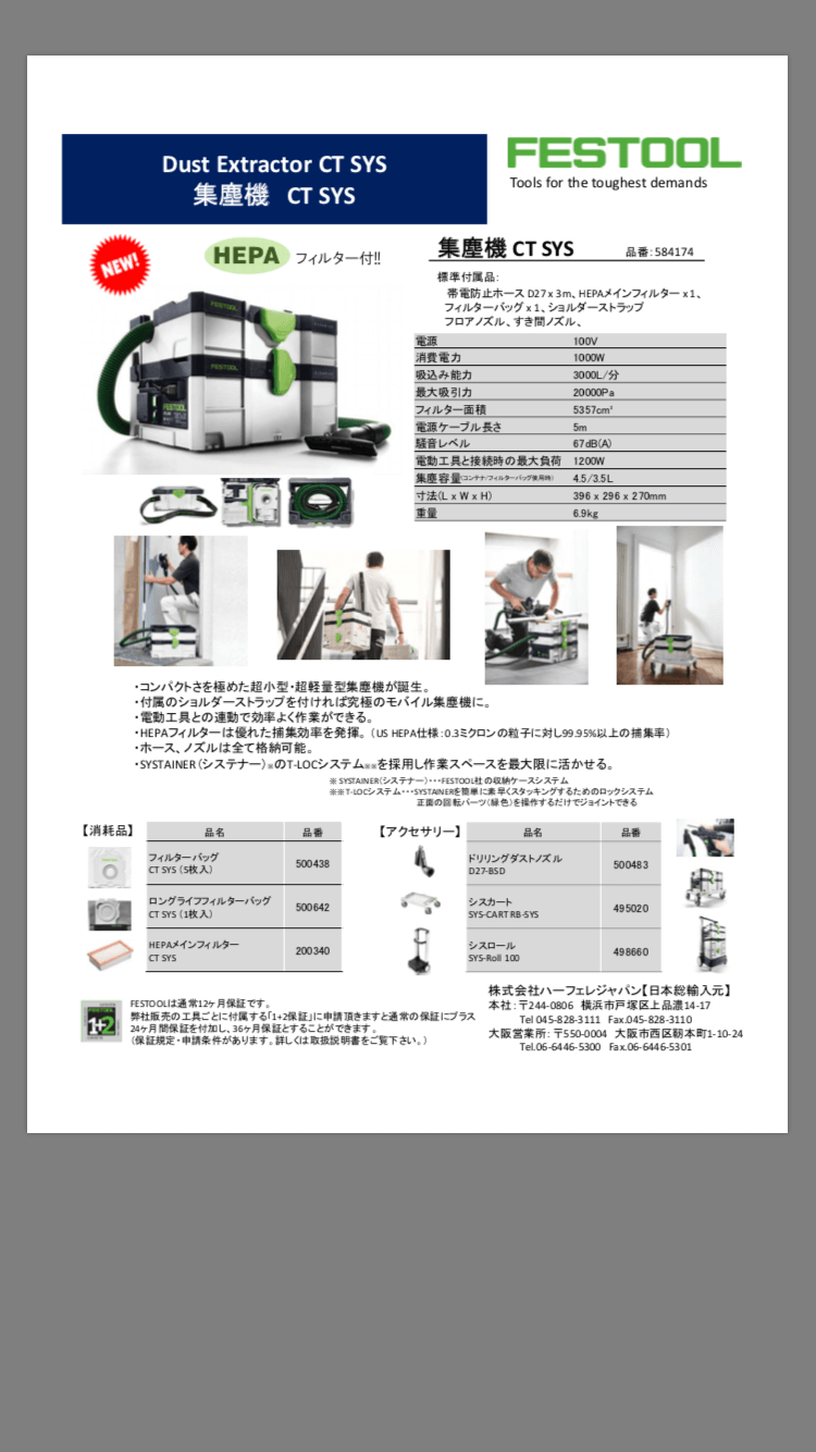 FESTOOL社より新型の集塵機が発売されました!新型と言っても従来品をコンパクトにしたタイプで現場仕様向けです。近年ドミノチップも小箱のパッケージタイプが人気です。集塵機も是非この....