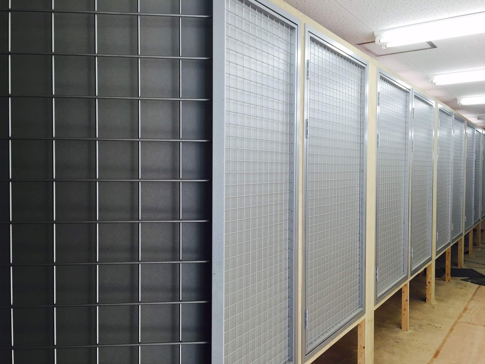 京都のスポーツ用品店、別注スチールフレーム&メッシュ扉 x11台を納めた現場にて!今回は現場打合せから製作、塗装までお受けさせていただきました。シルバーウィークが噛んで非常に限られ....