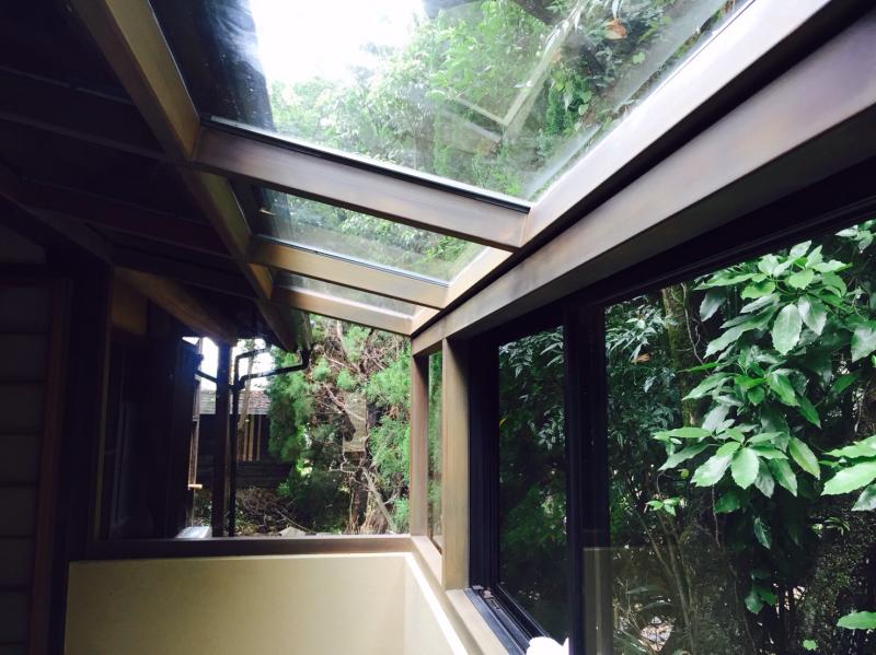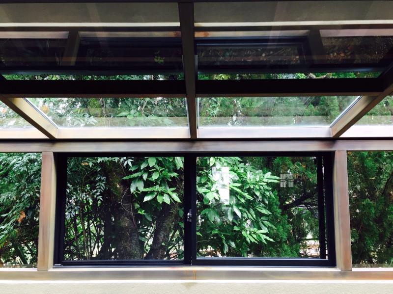 今回は増設されたサンルームのスチール、ステンレス、アルミサッシに鉄錆ブラックパティーナで仕上げました。