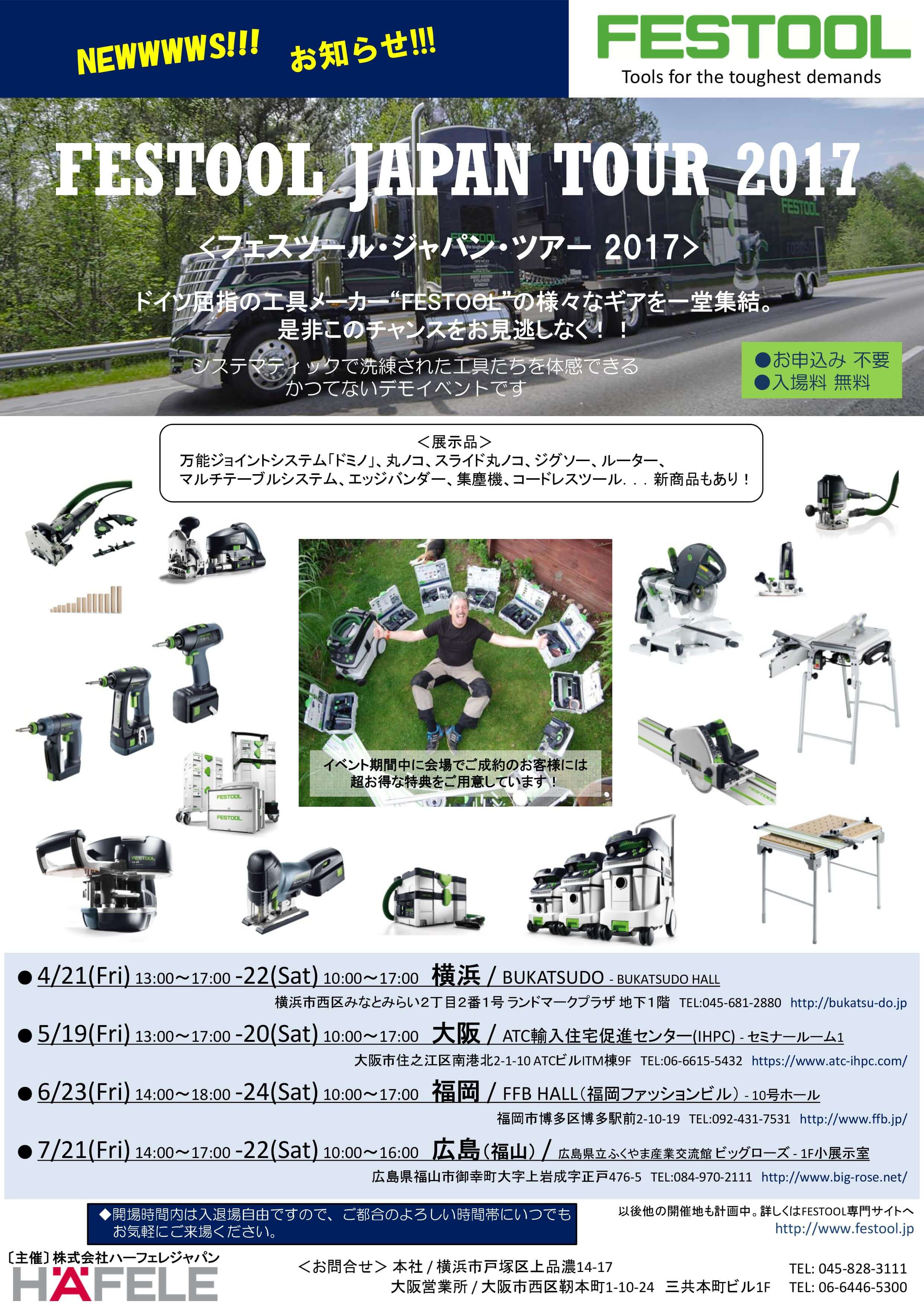 ドイツ屈指の電動工具メーカー“FESTOOL”の様々なギアが一堂集結。システマチックで洗練された木工工具を体感できる、日本国内主要都市を巡るかつてない規模のデモイベントツアーです。