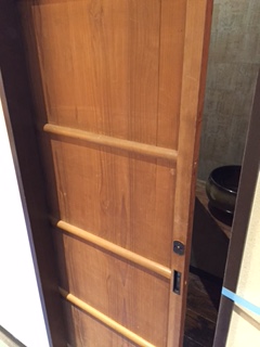 こちらの扉の框は30mm。掘込もできず、普通の打掛錠では框が狭すぎ